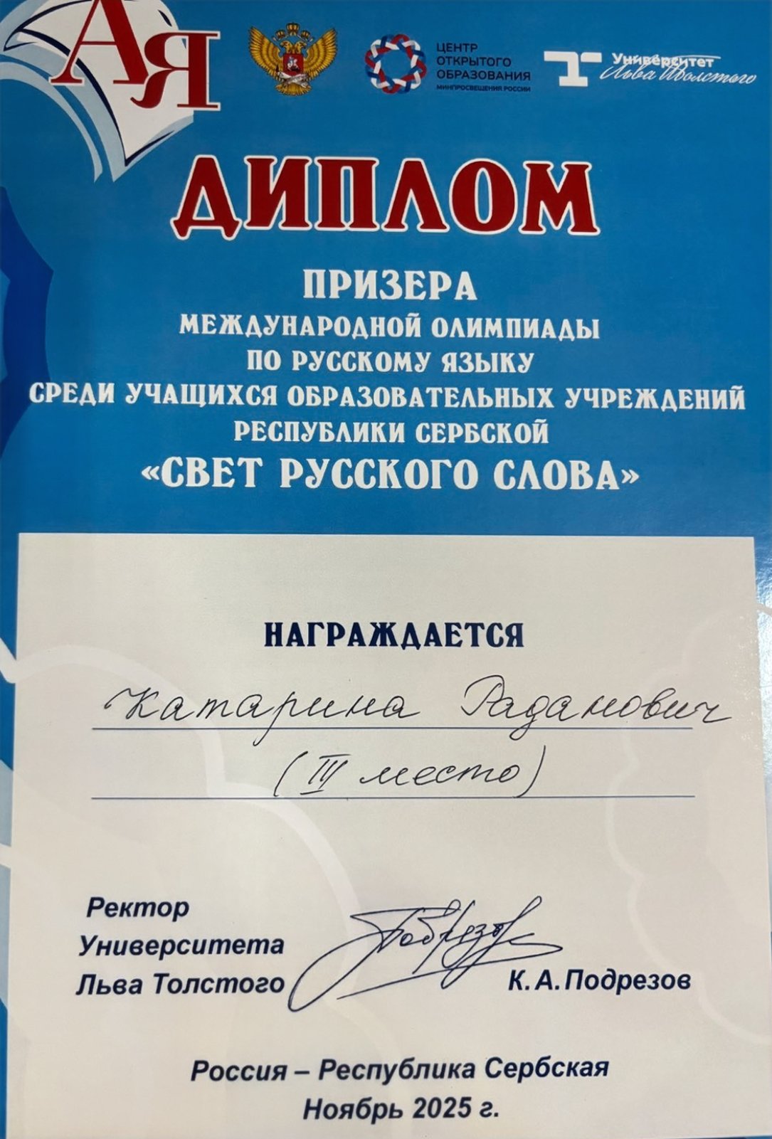 МЕЂУНАРОДНА ОЛИМПИЈАДА ИЗ РУСКОГ ЈЕЗИКА